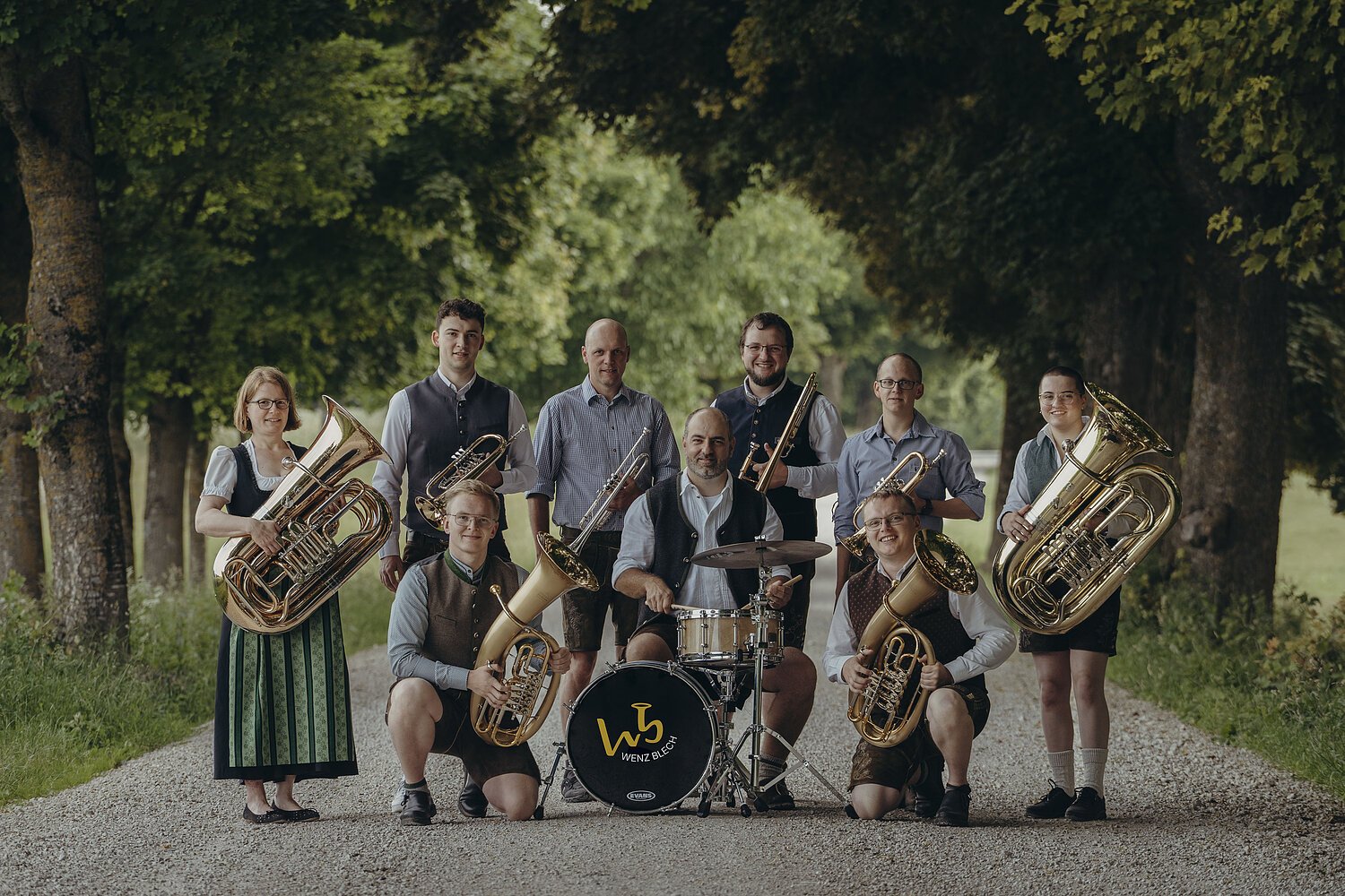 Neun Musikerinnern und Musiker, eine gemeinsame Leidenschaft: die traditionelle Blasmusik.