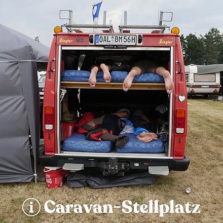 Wir haben einen kostenlosen Stellplatz direkt am Festivalgelände – mit Zugang…